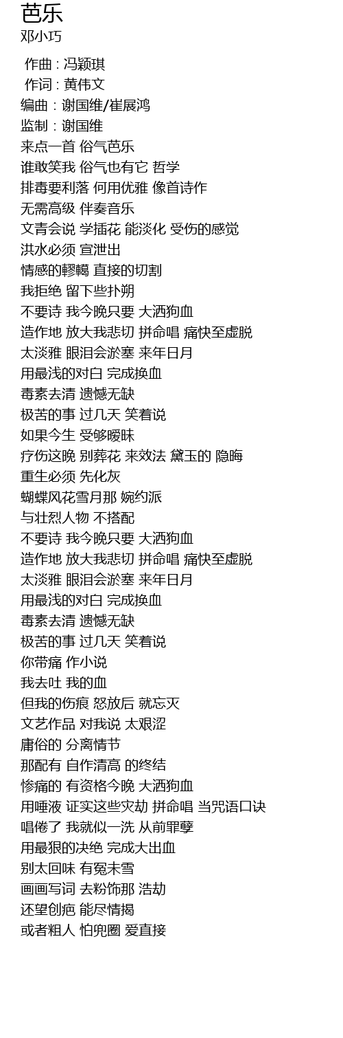 | [00:15.06] | 来点一首 俗气芭乐 |