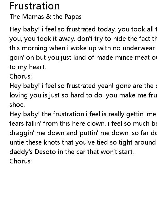 Hey baby! i feel so frustrated yeah! gone are the days when i felt so glad. loving you is just so hard to do. you make me frustrated like i'm stuck in a shoe. |