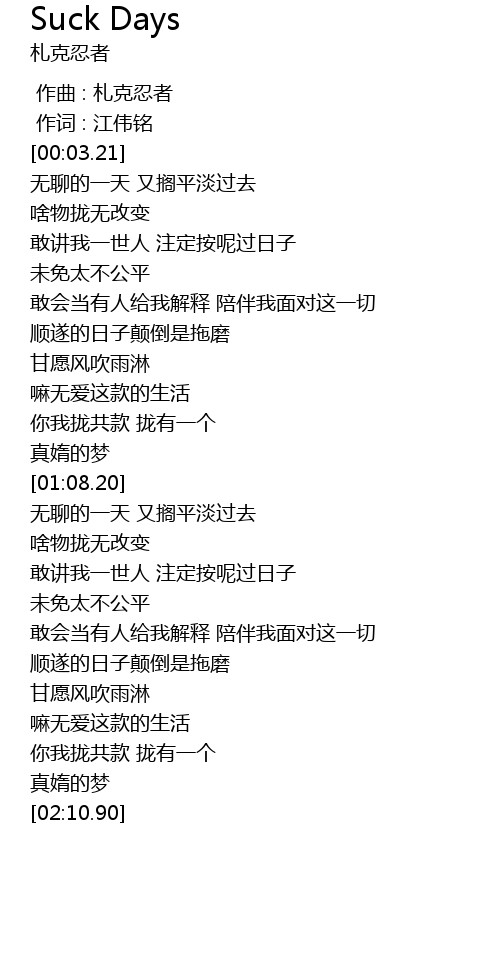 | [01:30.63] | 敢讲我一世人 注定按呢过日子 |