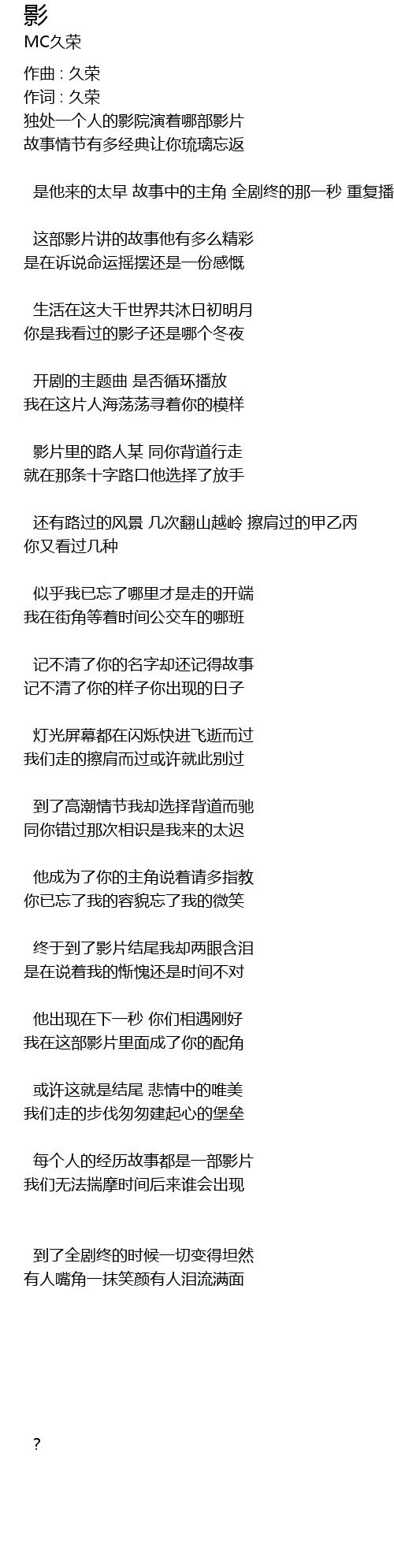 | 每个人的经历故事都是一部影片 我们无法揣摩时间后来谁会出现 | |