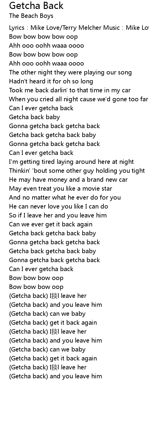 | Getcha back getcha back baby | |