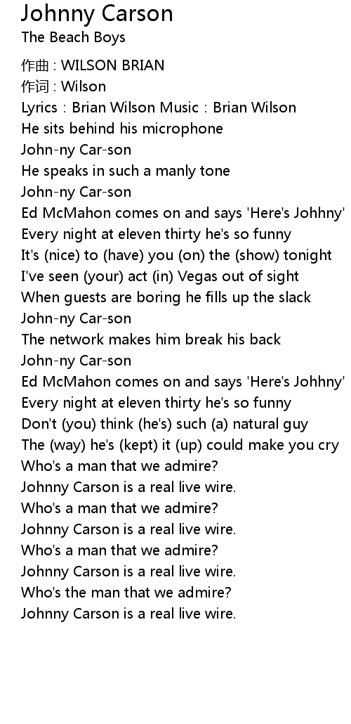 | 歌曲 | Johnny Carson |