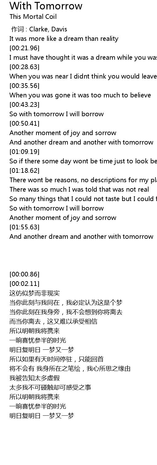 | [01:42.02] | So with tomorrow I will borrow |