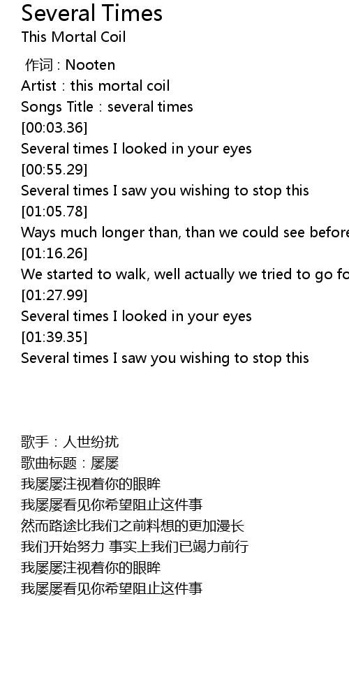 | [00:57.73] | Several times I saw you wishing to stop this |