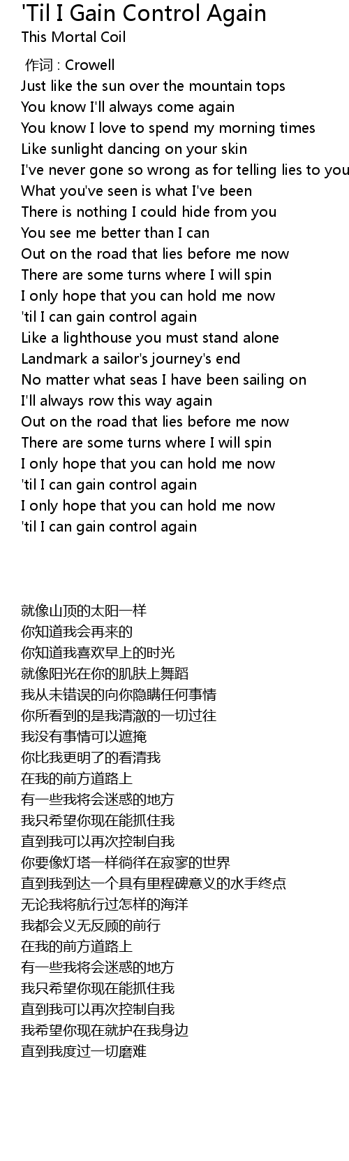 | 歌曲 | 'Til I Gain Control Again |