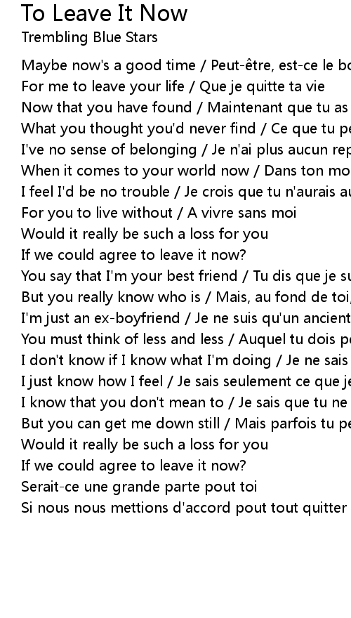 | Maybe now' s a good time Peut tre, estce le bon moment | |