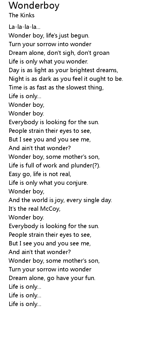 Wonder boy, life's just begun. |