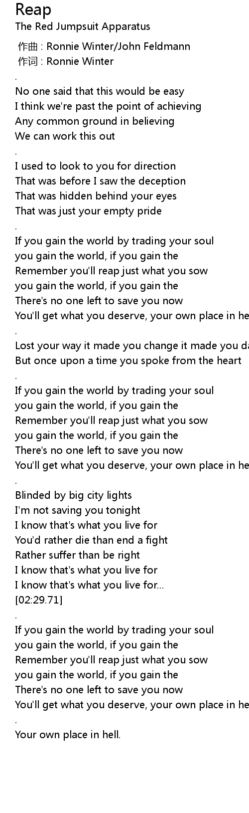 | [00:41.24] | Remember you' ll reap just what you sow |