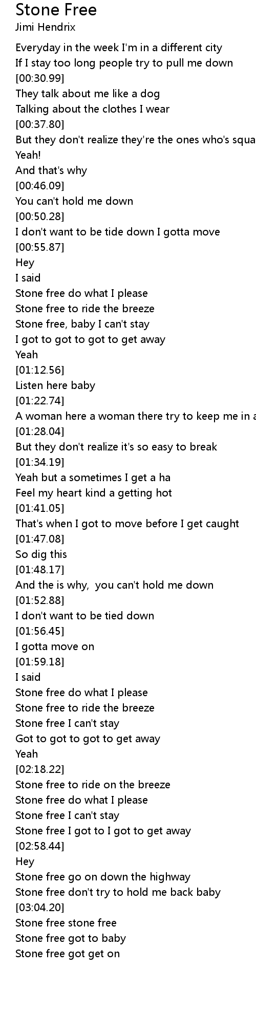 Stone free I got to I got to get away |