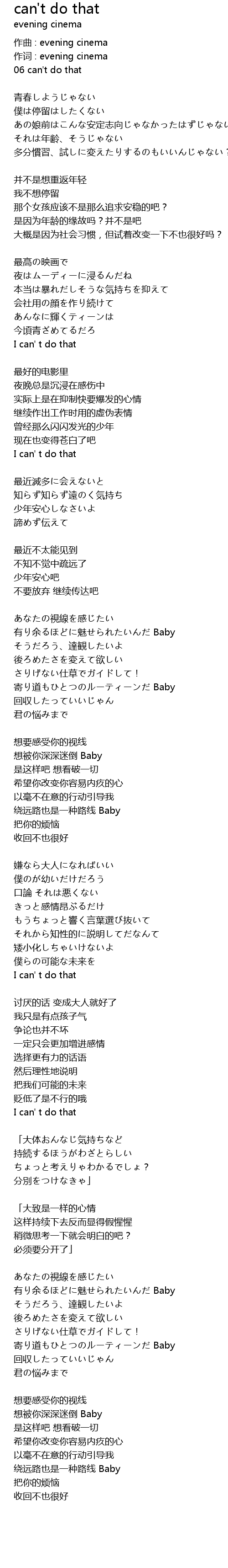 | 歌曲 | can't do that |