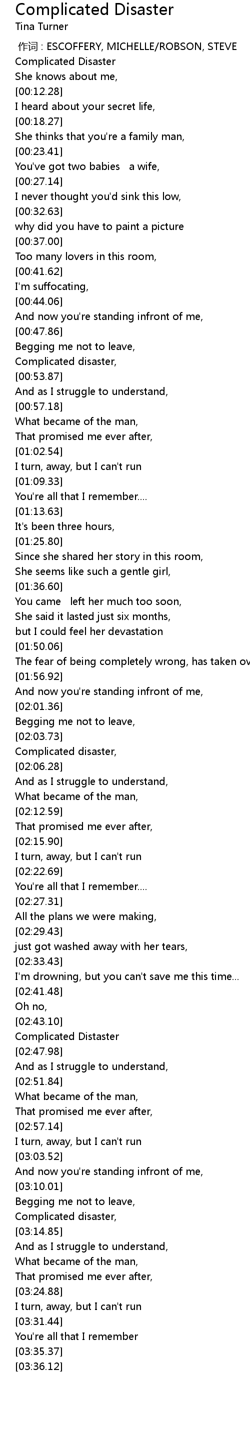 | [00:00.55] | Complicated Disaster |