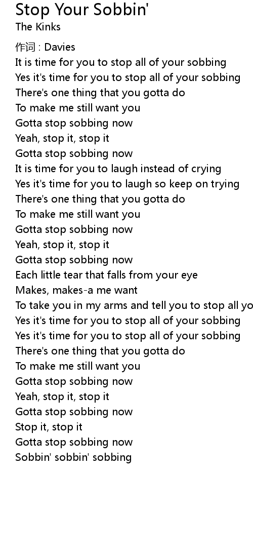 | Yes it's time for you to stop all of your sobbing | |