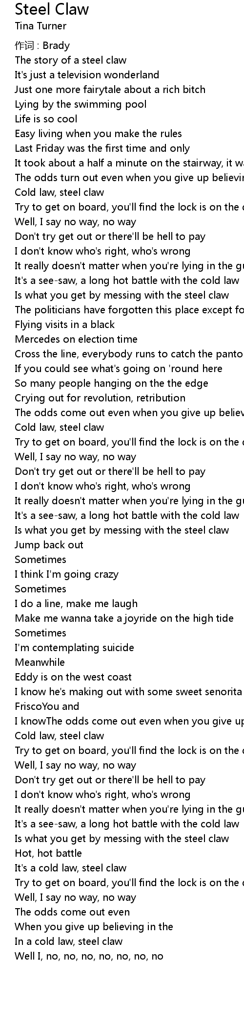 | 歌曲 | Steel Claw |