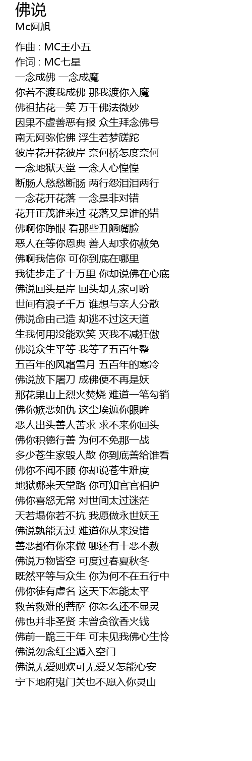 | 佛你不闻不顾 你却说苍生难度 | |