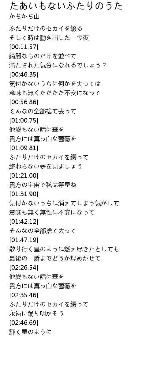 [01:21.00] 貴方の宇宙で私は箒星ね