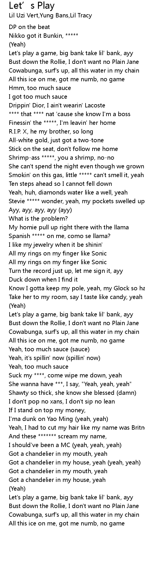 Let's play a game, big bank take lil' bank, ayy |