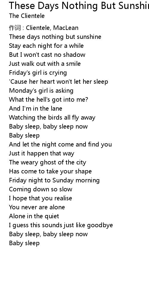 | 歌曲 | These Days Nothing But Sunshine |
