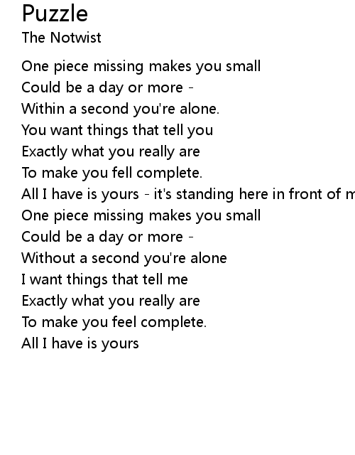 | One piece missing makes you small | |