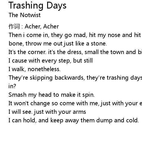 | 歌曲 | Trashing Days |