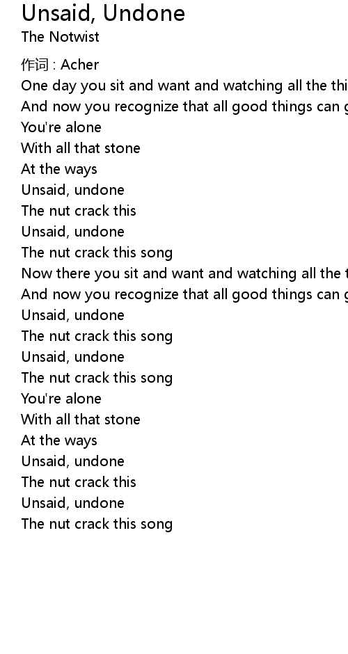| 歌曲 | Unsaid, Undone |