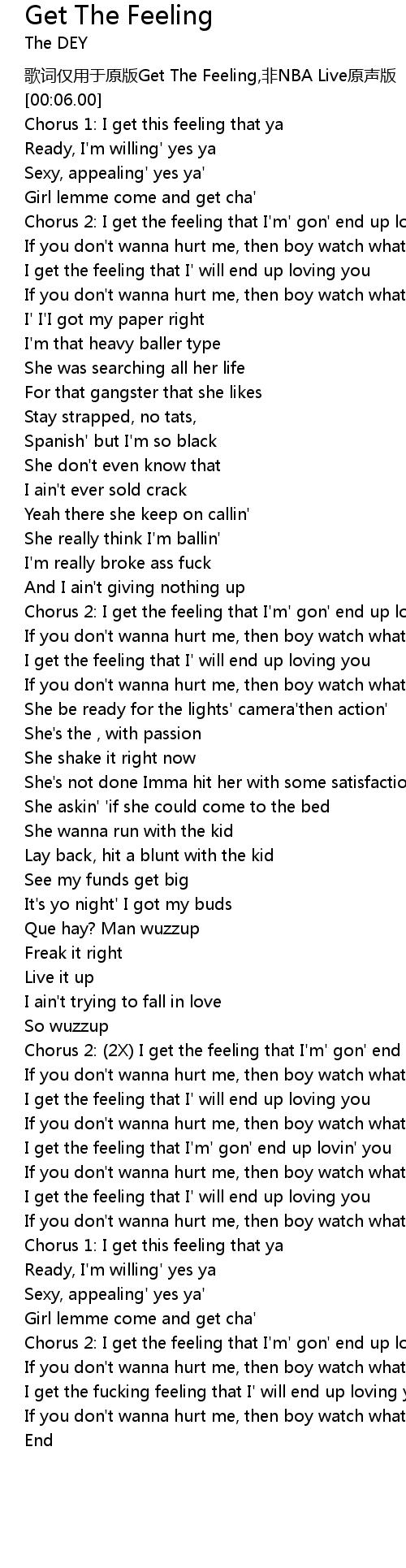 | [00:00.00] | gē cí jǐn yòng yú yuán bǎn Get The Feeling, fēi NBA Live yuán shēng bǎn |