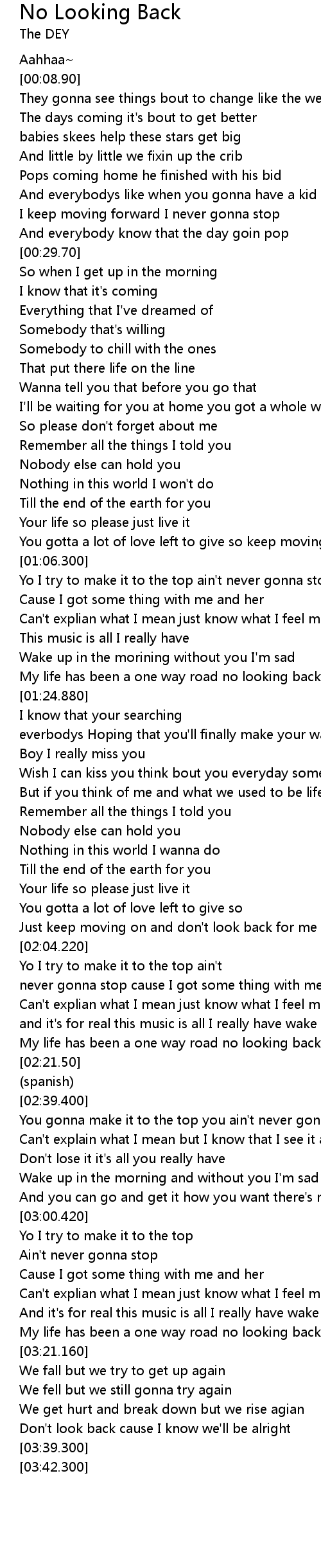 | [03:36.510] | Don' t look back cause I know we' ll be alright |