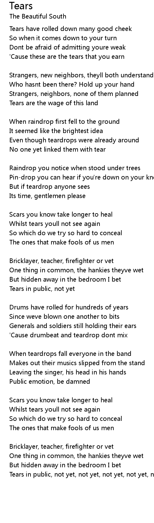 Tears in public, not yet, not yet, not yet, not yet, not yet |