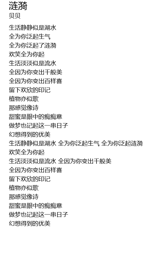 | [01:59.74] | 生活静静似是湖水 全为你泛起生气 全为你泛起涟漪 欢笑全为你起 |