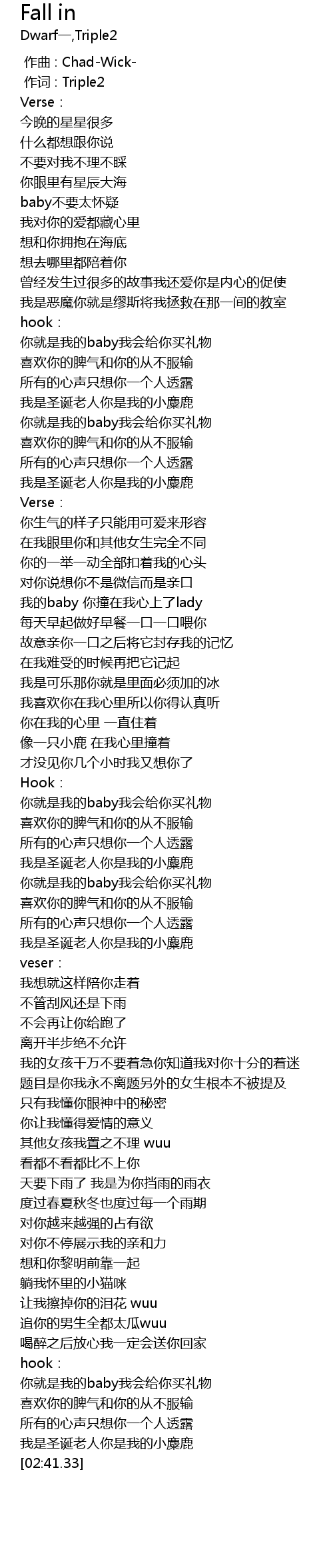 | [00:41.15] | 你就是我的baby我会给你买礼物 |