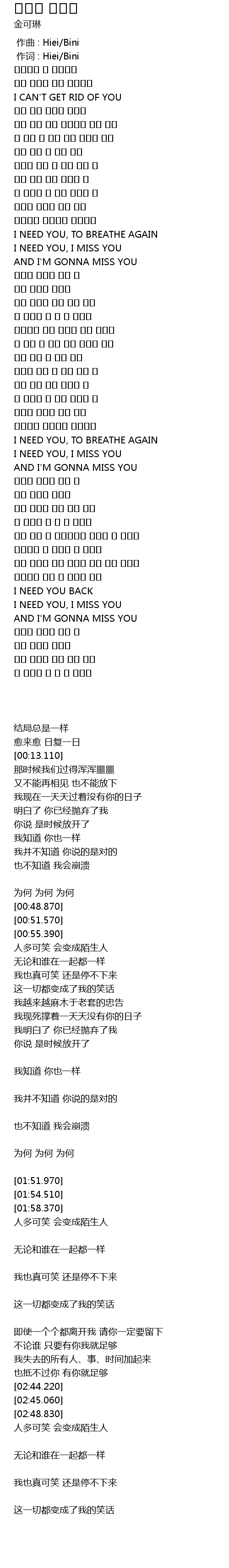 | [02:45.060] | I NEED YOU, I MISS YOU |