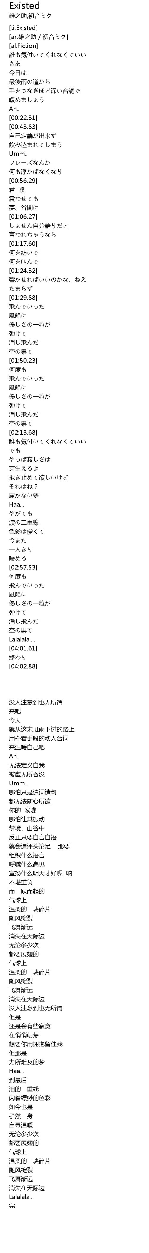 | [01:24.66] | 響かせればいいのかな、ねえ |