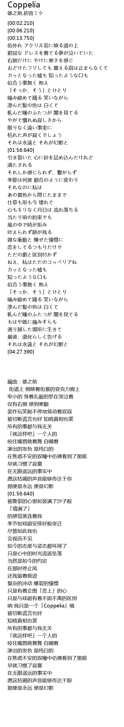 | [03:30.780] | 呐 我只是一个「Coppelia」哦 |