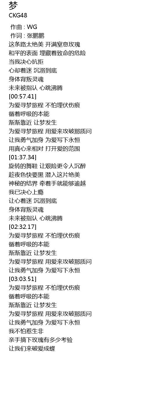 | [00:01.000] | 作词 : 张鹏鹏 |