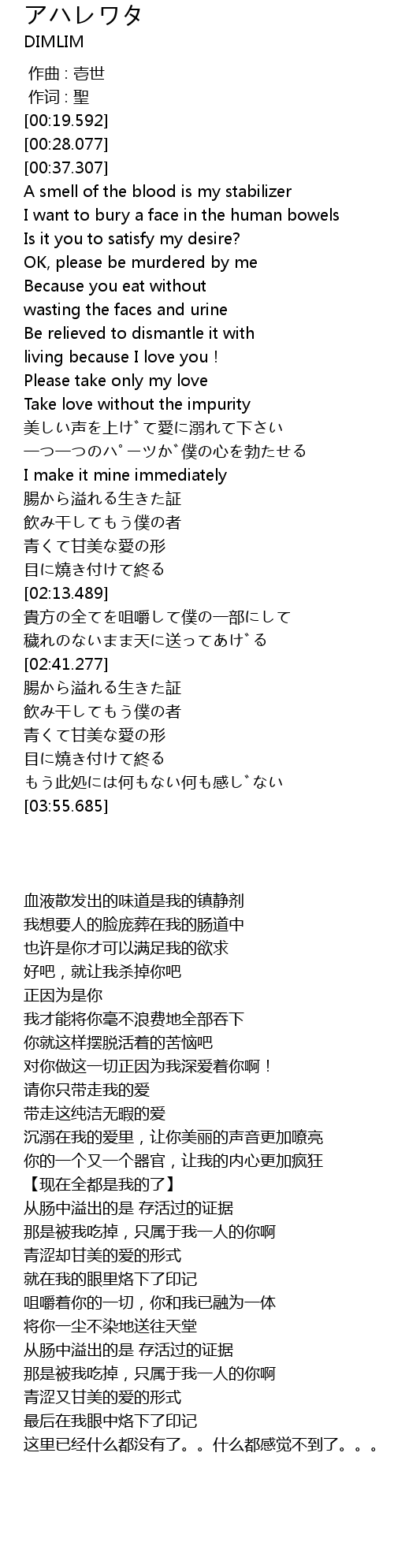 | [02:25.704] | 貴方の全てを咀嚼して僕の一部にして |