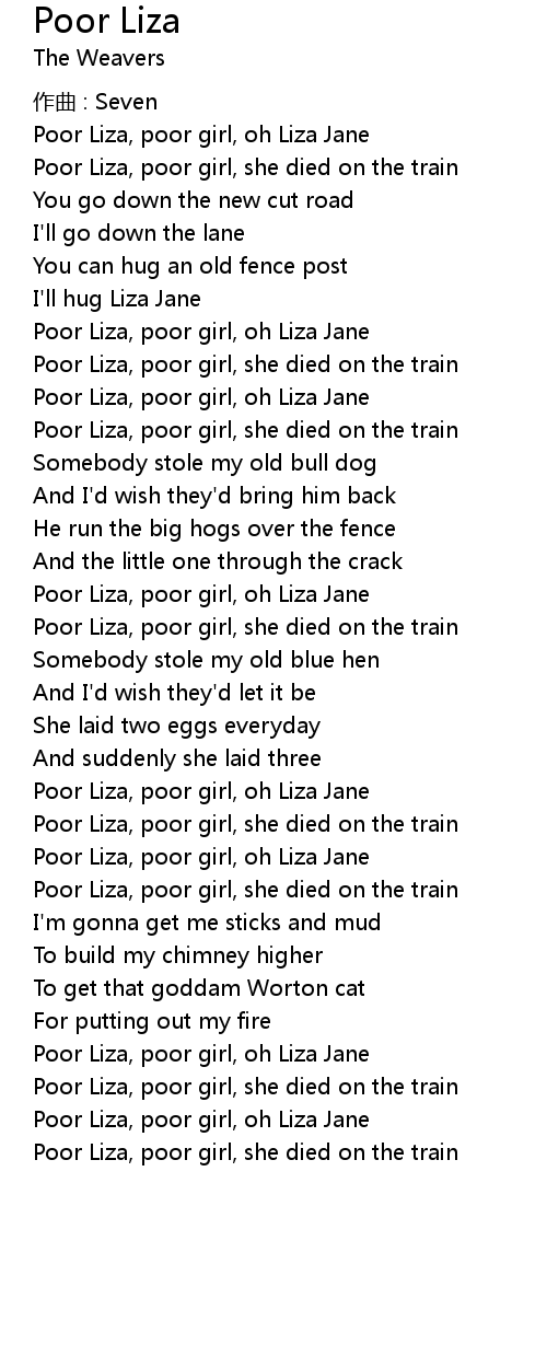 | 歌曲 | Poor Liza |