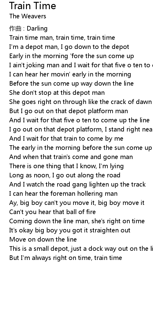 | Coming down the line man, she' s right on time | |