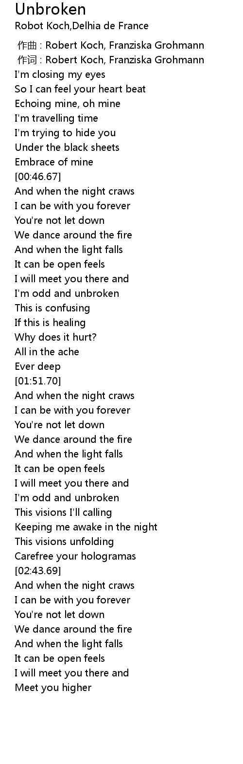 | [02:23.20] | I' m odd and unbroken |