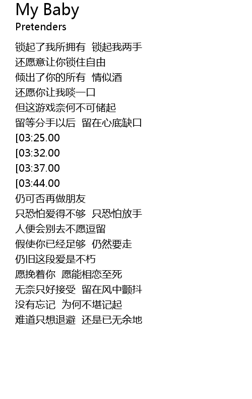 | [04:02.00][03:37.00][02:33.00][01:18.00] | MY BABY 请不要悄悄飘走 |