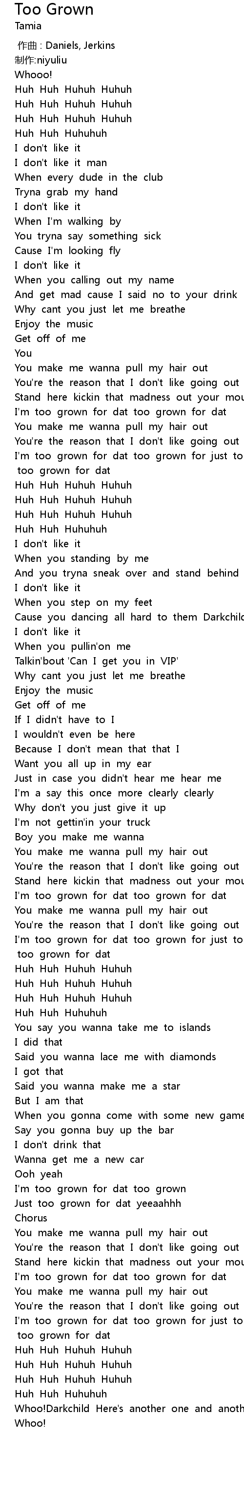| [02:47.315] | I' m too grown for dat too grown for just to grown for dat too grown for dat |