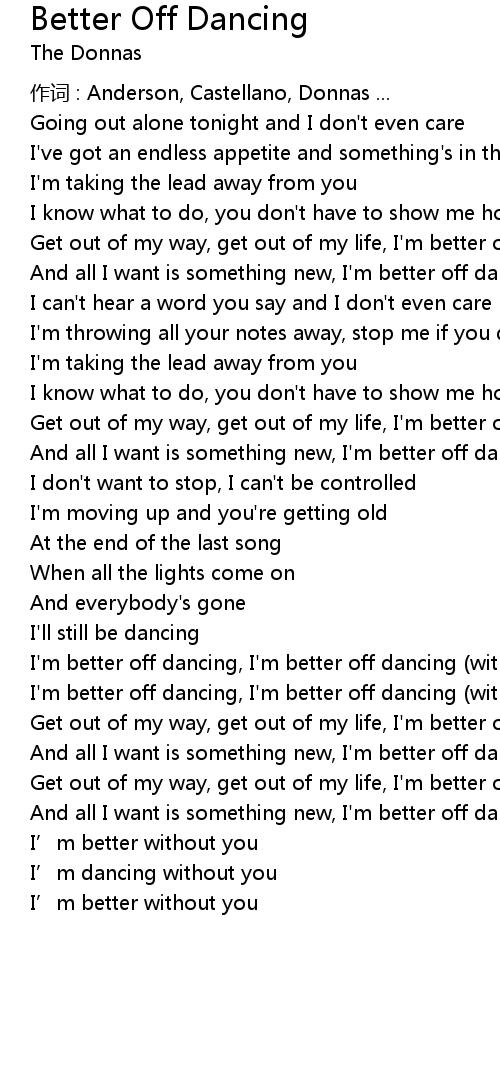 | I'm better off dancing, I'm better off dancing (without you) | |