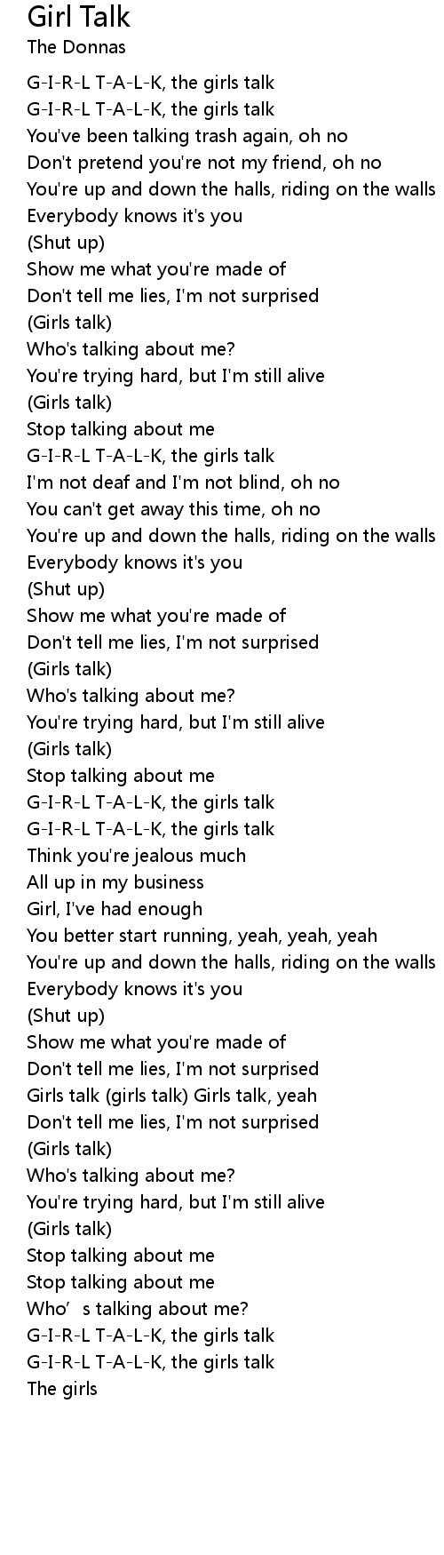 | Girls talk (girls talk) Girls talk, yeah | |