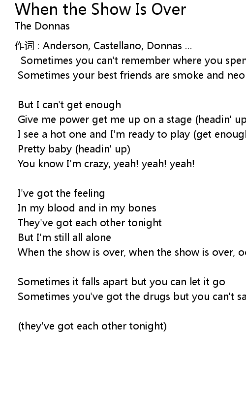 | 歌曲 | When the Show Is Over |