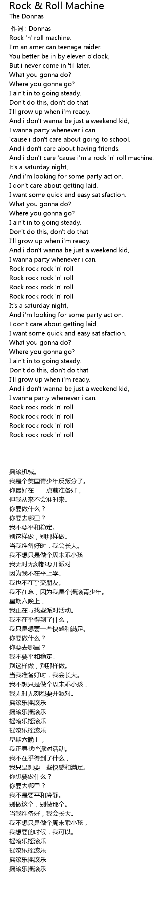 | [00:46.490] | And i don' t care ' cause i' m a rock ' n' roll machine. |