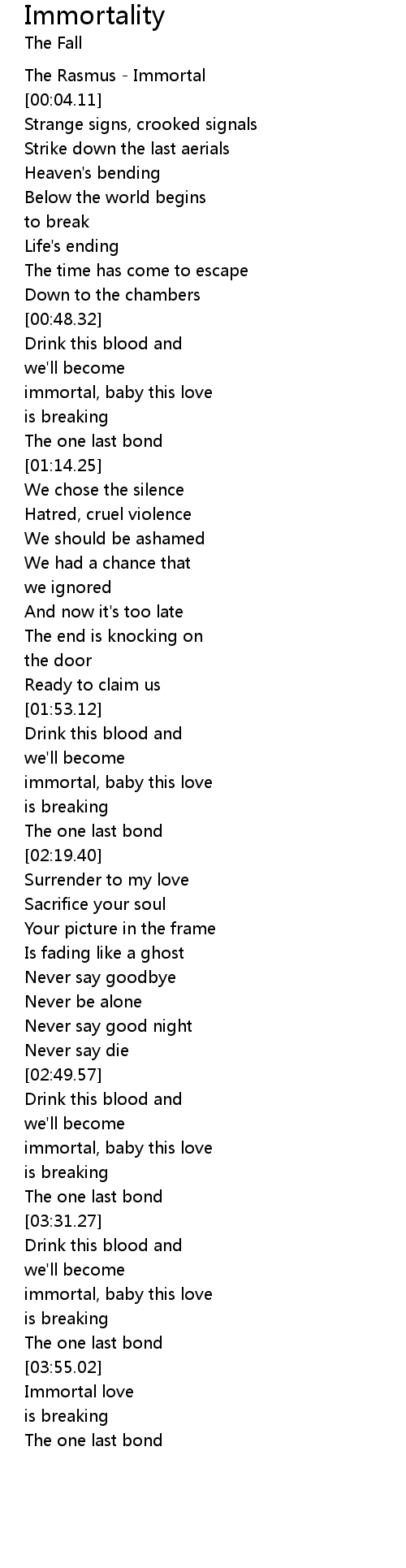 immortal, baby this love |