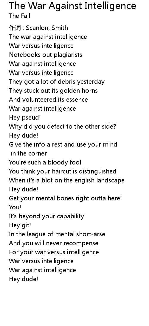 | 歌曲 | The War Against Intelligence |