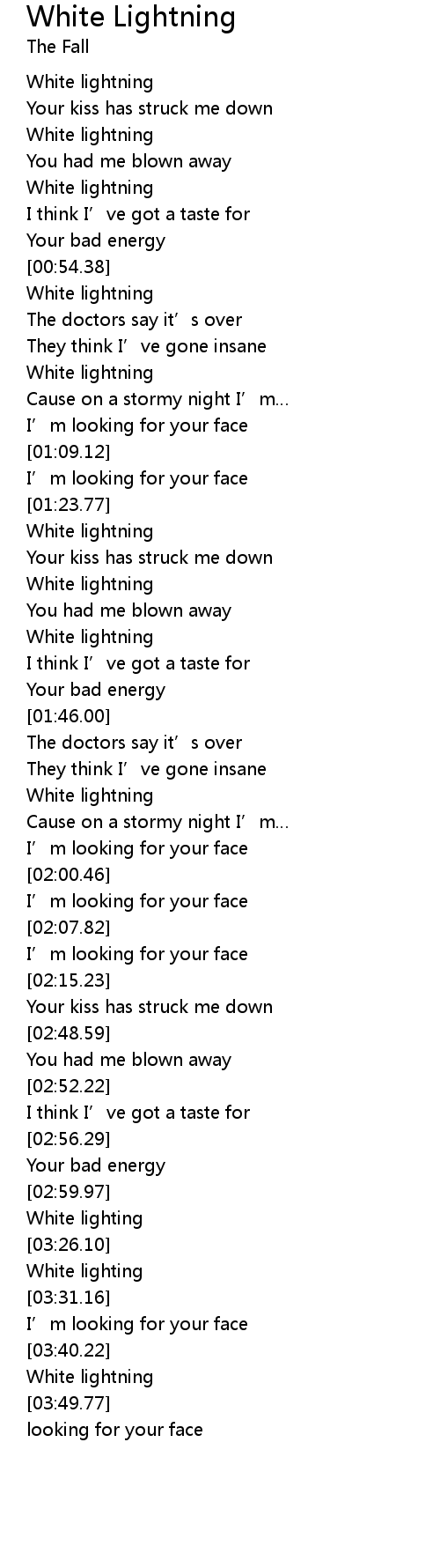 | [01:35.14] | White lightning |