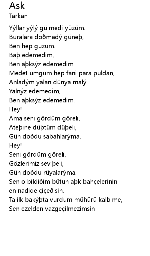 | Sen o bildiðim bütun aþk bahçelerinin | |
