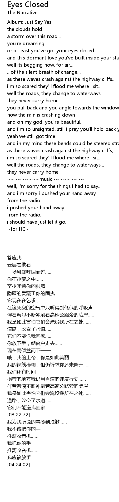 and i'm so unsighted, still i pray you'll hold back your escape.... |