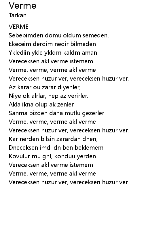 | Vereceksen akl verme istemem | |