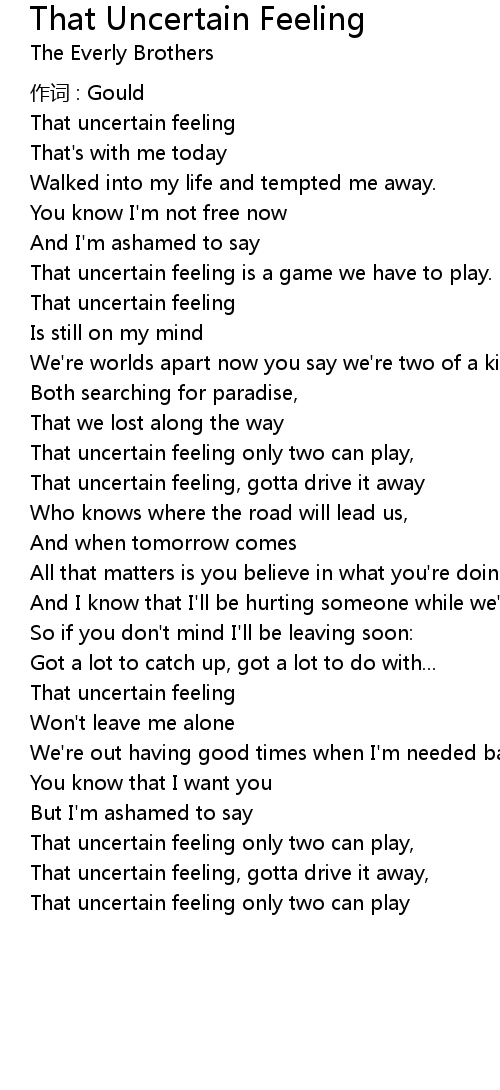 | 歌曲 | That Uncertain Feeling |